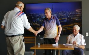 Handing over the trophy to EP Blue representative Brian Smith.